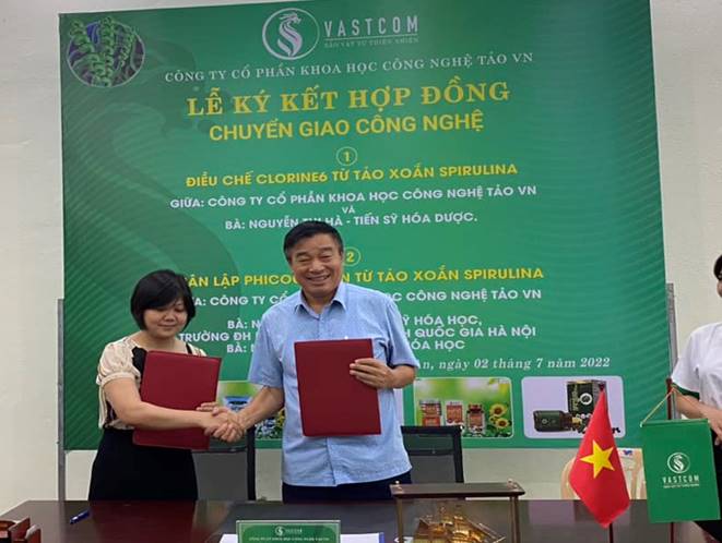 Tiếp đến năm 2022, VASTCOM tiếp tục kí hợp tác với Tiễn sĩ Nguyễn Thị Hà – Viện dược liệu trung ương để ” Thực hiện quy trình điều chế chlorin E6 từ Methyl pheophorbid A ở quy mô công nghiệp”