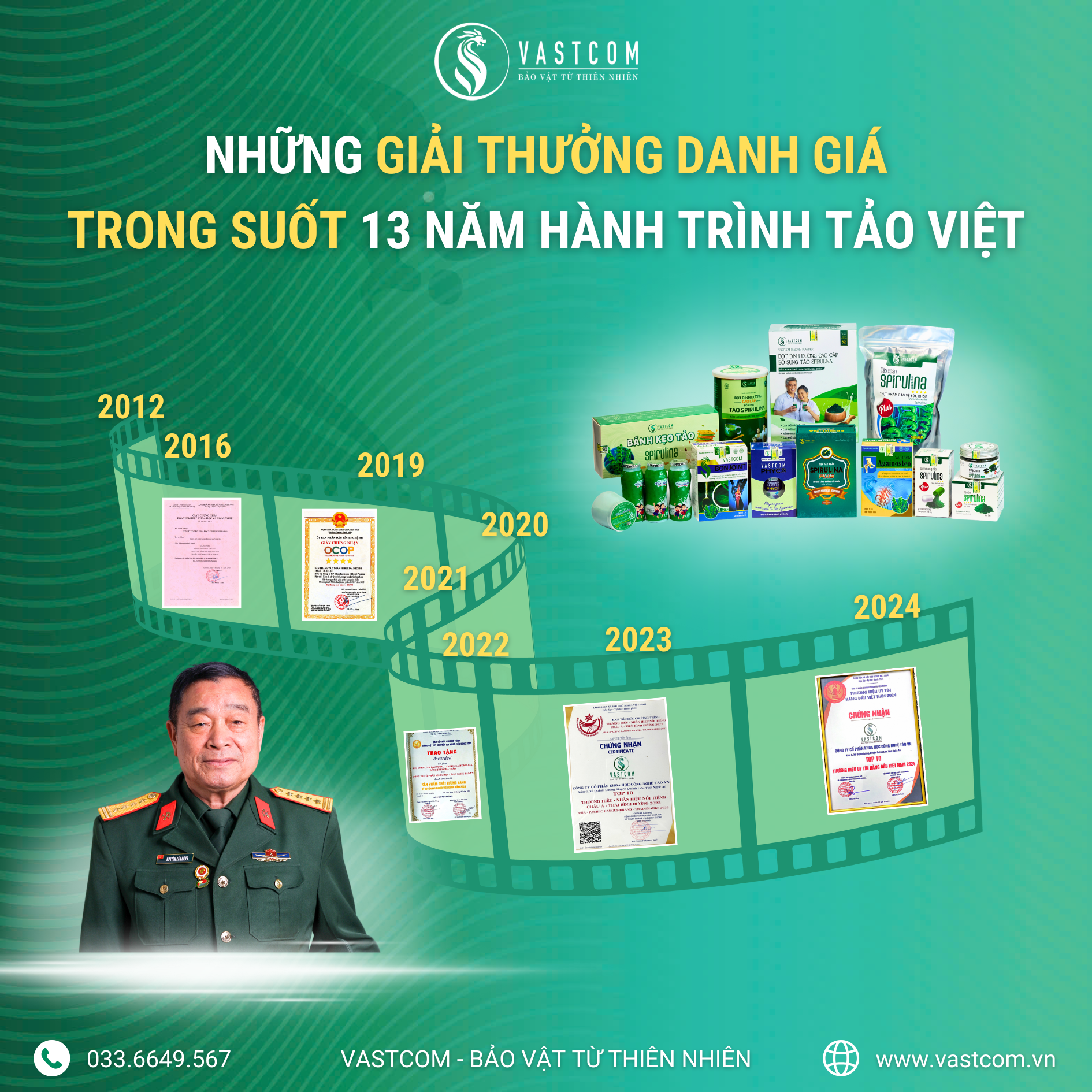 Khám phá hành trình 13 năm VASTCOM khẳng định chất lượng Tảo xoắn Spirulina Việt Nam qua loạt giải thưởng danh giá trong nước và quốc tế. Tìm hiểu về công nghệ, sản phẩm và...